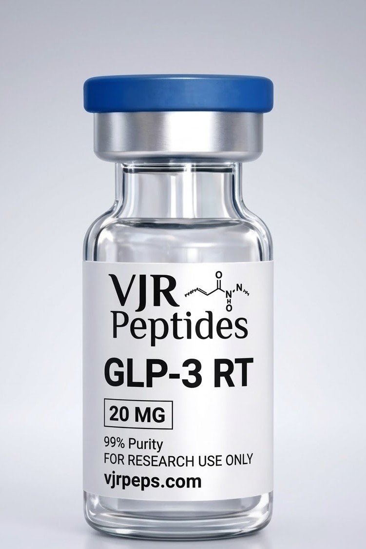 GLP-3RT 20mg is a high-purity peptide intended strictly for laboratory research purposes. This compound is provided in lyophilized form and packaged to maintain quality and stability for scientific study.